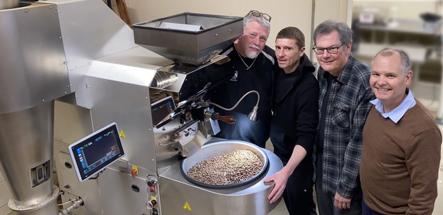 I Have a Bean staff with their Loring roaster, and Pete Leonard (right).